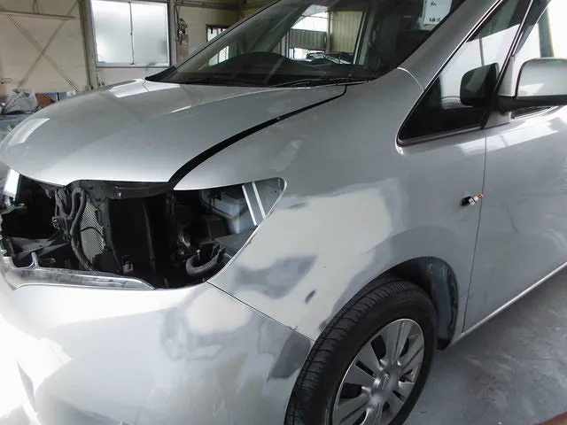 日産 セレナ 左フロント 板金塗装 修理 バンパー フェンダー 越谷市より