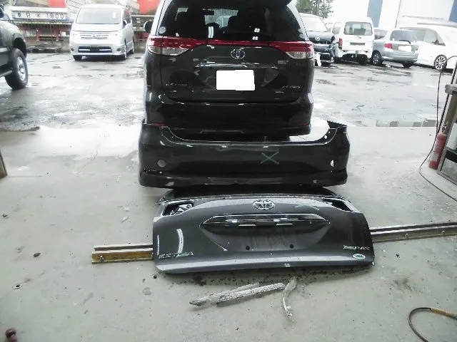 トヨタ エスティマ リヤ回り 春日部市より 保険修理         トヨタ エスティマ リヤ回り 追突事故 保険修理 板金塗装 春日部市より