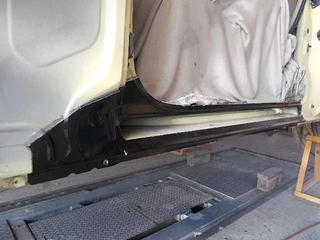 ステップを剥がし、新品部品のステップパネルを合わせ、溶接していきます。