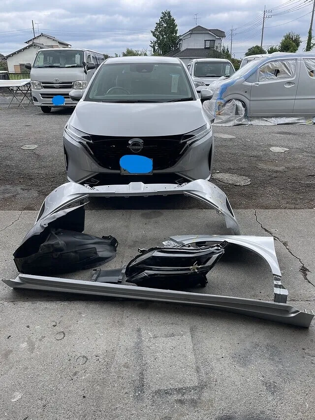 日産 セレナ 左フロント 板金塗装 修理 バンパー フェンダー 越谷市より